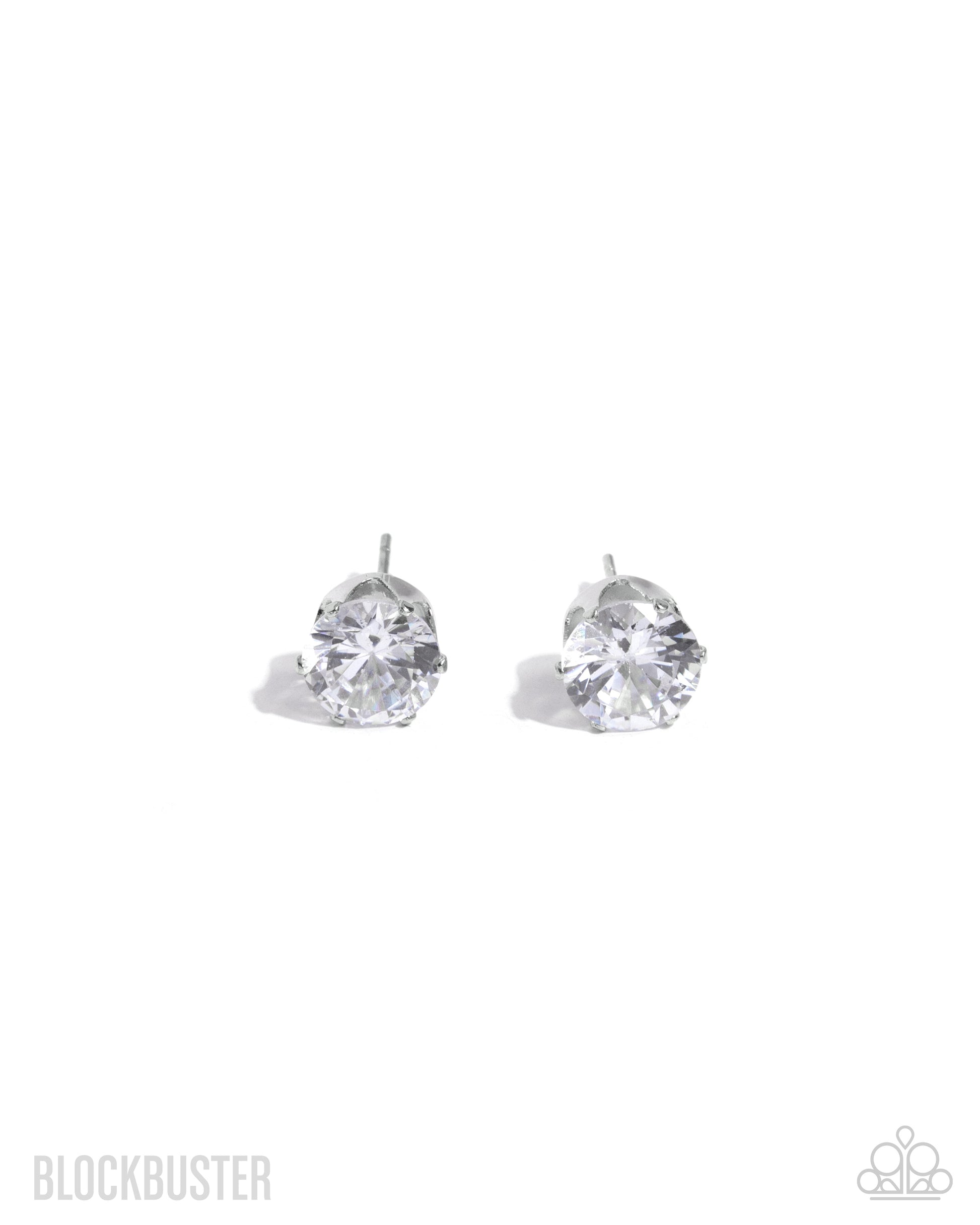 A sparkling white cubic zirconia is nestled inside a classic silver frame for a timeless look. Earring attaches to a standard post fitting.